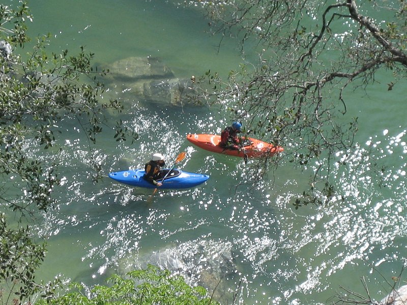 Pictures in 3D are needed to fully appreciate the beauty of the trail and river gorge. Three photo pairs were taken that allow you to see this beauty in 3D. When the picture pairs are on your computer screen, look at the center line between the pairs and let your eyes relax so they look beyond the screen. As your eyes relax the pictures in each pair begin to overlap. When they completely overlap the center of your two-eye vision becomes a picture in 3D. Ignore what you see on either side of the 3D picture with your peripheral vision. Focus your attention on the center image until a 3D picture pops into view. Click here for the picture pairs. When your Adobe PDF Reader opens, set the magnification to 75% (easier to view 3D) or 100% (better result after you are experienced). Print the PDF page at 75% or 100% for even better results. |