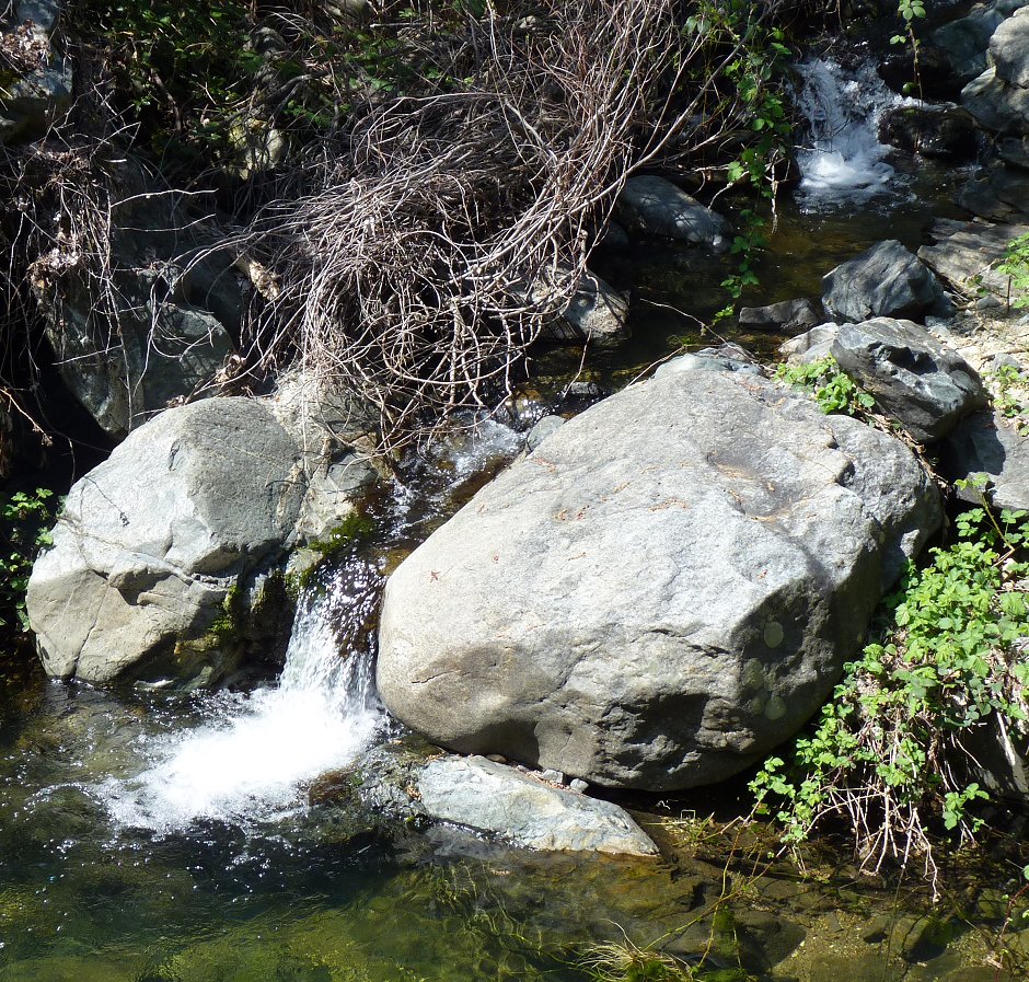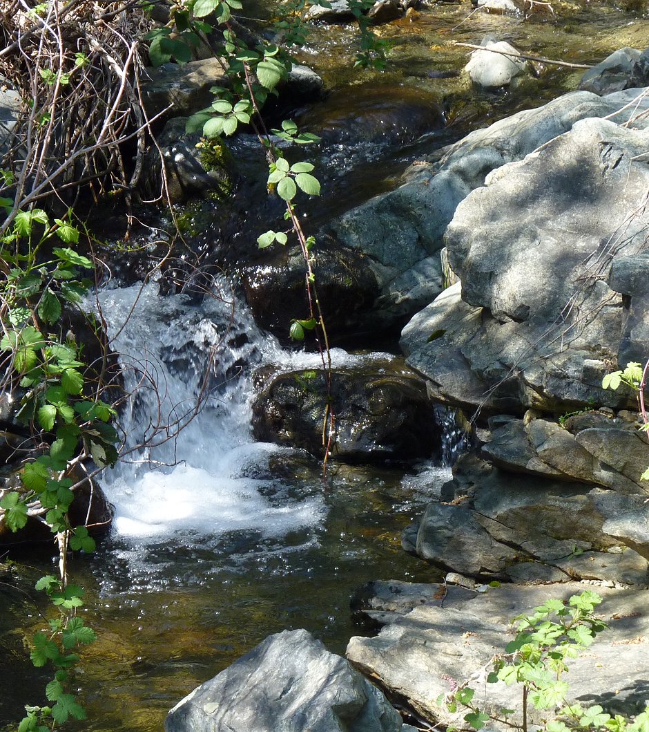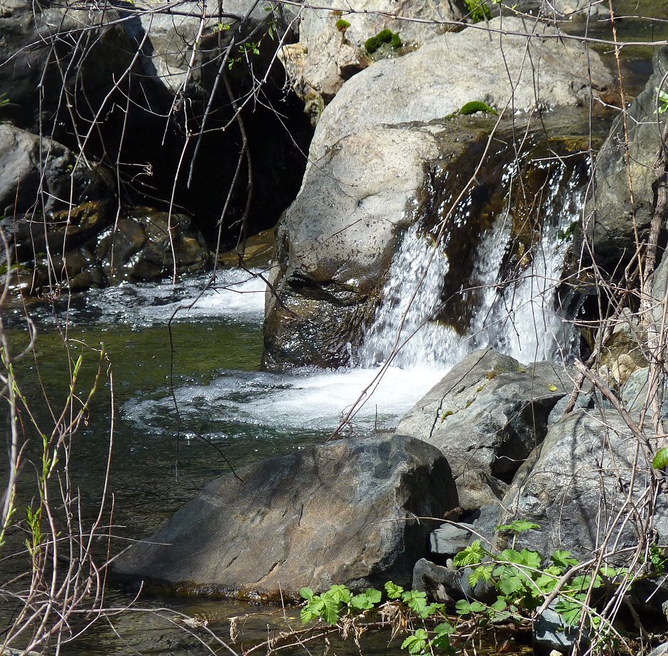 Here are the third and fourth, farther upstream. You can see only the foam from the fourth waterfall. |